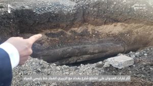 شاهد آثار غارات تحالف العدوان الأمريكي السعودي على تقاطع شارع بغداد مع الزبيري بأمانة العاصمة وانفجار خط رئيسي للمياه ما ادى إلى تضرر المواطنين جراء انقطاع خدمات المياه.. صور