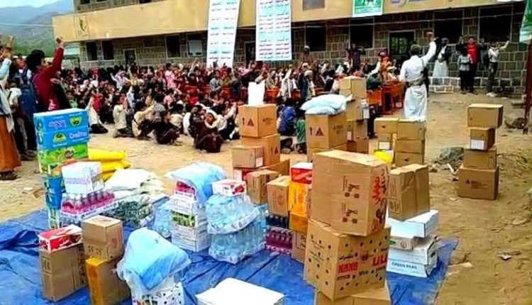 قافلة غذائية مقدمة من أسرة الشهيد الحمامي بمحافظة ريمة دعماً للجبهات