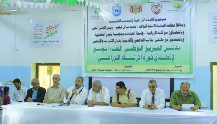 من جانبه، أكد عميد كلية الزراعة، الدكتور العزي فقيه، على أهمية أن تكون محافظة الحديدة هي السباقة ونقطة الانطلاق لثورة الإرشاد الزراعي.
