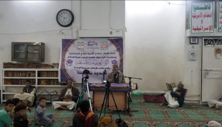 نظم مكتب الإرشاد بمديرية الوحدة بأمانة العاصمة اليوم، فعالية ثقافية إحياءً لذكرى ميلاد فاطمة الزهراء -عليها السلام- تحت شعار (صلاح الأسرة.. صلاح للمجتمع).