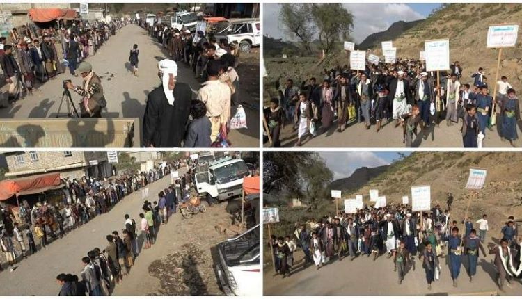 وقفة احتجاجية بمديرية الشاهل بـ “حجة” استنكارا لجرائم العدوان والتصعيد العسكري والحصار