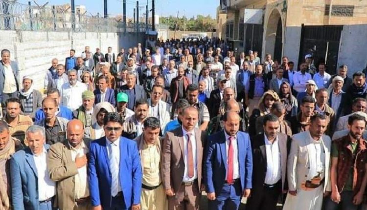 وقفة لقطاع النظافة وموظفي شركة النفط تنديداً باحتجاز العدوان لسفن الوقود