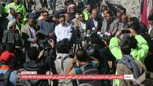 من جانبه أوضح رئيس مركز عين للإنسانية أحمد أبو حمراء، أن الجريمة التي ارتكبت في المدينة الليبية ليست الجريمة الأولى التي يرتكبها العدوان في العاصمة، فالعدوان قد ارتكب أكثر من 200 جريمة، ما يؤكد بشاعة اجرام تحالف العدوان في استهداف الأحياء السكنية ومنها هذه الجريمة في الحي الليبي الذي لا تزال فرق الإنقاذ حتى الان تحاول انتشال الضحايا.