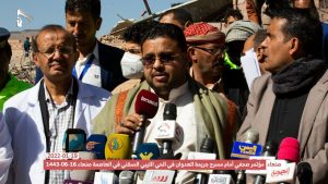 وخلال المؤتمر الصحفي “من أمام مسرح جريمة العدوان في المدينة الليبية” أكد وكيل وزارة الإعلام نصر الدين عامر، على أن مسرح الجريمة يكشف كذب ادعاءات العدوان الذي زعم أن الغارات استهدفت منصة صواريخ، وها أنتم الآن تشاهدون الان مكان الجريمة والمتمثل بحي سكني مكتظ بالسكان من الاطفال والنساء والذين استشهد منهم العشرات وجرح اخرون فيما لا تزال بقية الجثث تحت الانقاض حتى اللحظة.