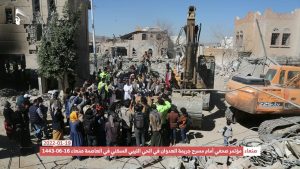 “صور” هذا ما شاهده الاعلاميون اليوم في مسرح جريمة تحالف العدوان في الحي الليبي بـ”صنعاء”