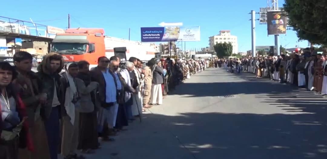 فيما استنكر أبناء مديرية التحرير، تصعيد وجرائم قوى العدوان ومواصلة احتجاز سفن المشتقات النفطية والغذائية والدوائية وحصار الشعب اليمني ومفاقمة معاناته.