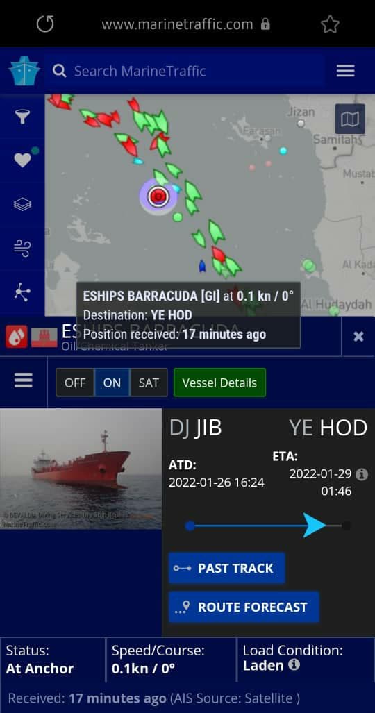 وكان متحدث شركة النفط اليمنية عصام المتوكل، أعلن يوم الأربعاء الماضي أن ‏تحالف العدوان احتجز في المياة الدولية السفينة “UHUD” التابعة لأحد مصانع القطاع الخاص والتي تحمل كمية (29,974 طن) من مادة الديزل واقتادها قسراً إلى قبالة جيزان، بالرغم من تفتيشها وحصولها على تصاريح أممية.