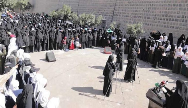 وقفة حاشدة لـ حرائر العاصمة صنعاء تنديداً بجريمة الحي الليبي
