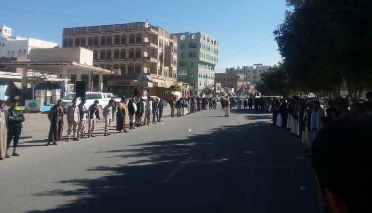وقفة احتجاجية بمديرية شعوب بصنعاء رفضاً للتصعيد الأمريكي