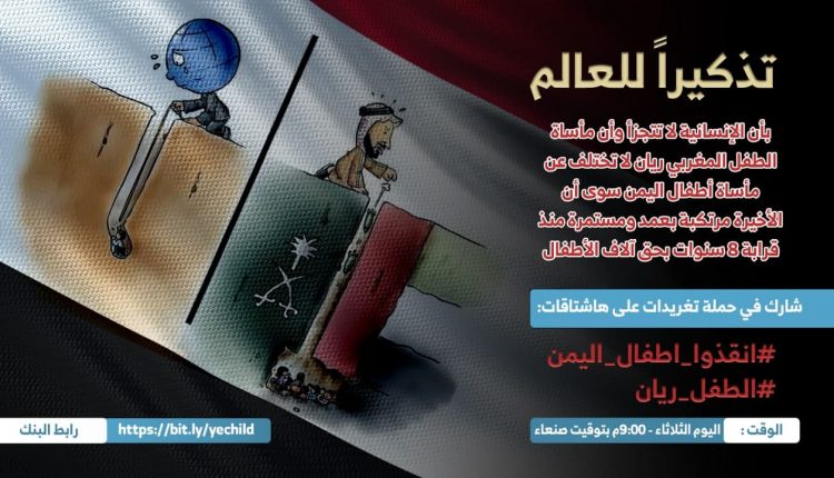 تذكيراً للعالم بأن الإنسانية لا تتجزأ وأن مأساة الطفل المغربي ريان لا تختلف عن مأساة أطفال #اليمن سوى أن الأخيرة مرتكبة بعمد ومستمرة منذ قرابة 8 سنوات بحق آلاف الأطفال