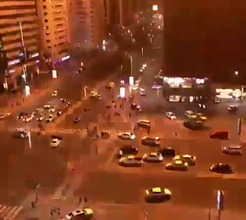 ويظهر مقطع الفيديو انتشارا كثيفا لقوات الأمن والإطفاء وتوقف حركة المرور في أحد شوارع أبوظبي.