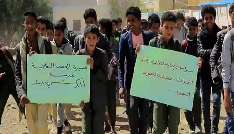مسيرات طلابية بصنعاء تدين جرائم وتصعيد العدوان