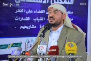 لافتا إلى أن ذلك يأتي تماشيا مع اهتمام القيادة الثورية والمجلس السياسي الأعلى وضمن مشروع الرئيس الشهيد صالح الصماد “يد تبني .. ويد تحمي” لدعم الشباب في كافة المناطق وفي مختلف المجالات.