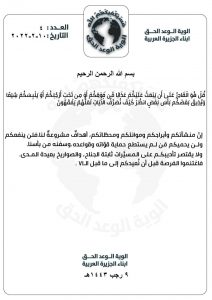 اصدرت ألوية الوعد الحق أبناء الجزيرة بيان لها قبل قليل حذرت فيه قوى العدوان وفي مقدمتها دويلة الامارات من عواقب وخيمة تنتظرها ما لم تتوقف عن عدوانها.