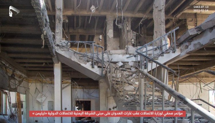 وكان طيران العدوان الأمريكي السعودي الإماراتي استهدف بغارتين عند الساعة الثانية صباح الاثنين 14 فبراير 2022م مبنى الشركة اليمنية للاتصالات الدولية في الجراف الغربي بمديرية الثورة بغارتين ما أدى الى تدميره كليا، وكذلك أضرارا بالغة بالمبنى المجاور للمبنى المستهدف.
