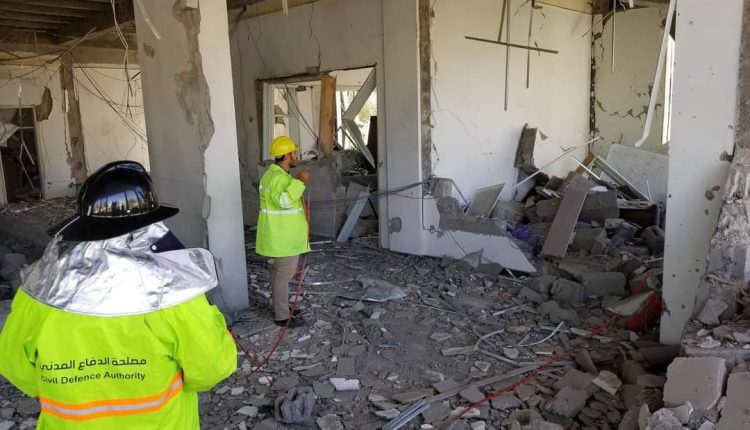 الدفاع المدني يدين استهداف العدوان لمبنى الاتصالات الدولية “تيليمن”