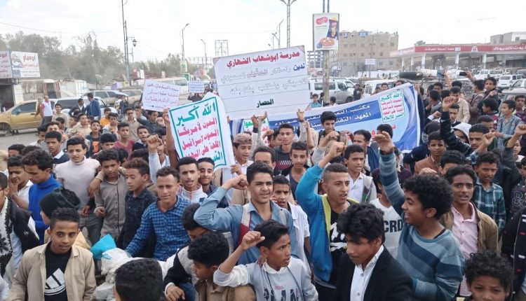 مسيرة طلابية بتعز تدين جرائم وتصعيد العدوان