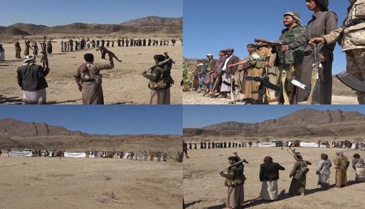 نظمت قبائل آل حسين التام بمديرية رحبة بمحافظة مأرب اليوم الخميس، وقفة قبلية مسلحة للحشد والنفير لمواجهة العدوان استجابة لحملة إعصار اليمن.