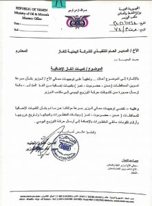 هذا وكشفت مصادر رسمية إلى ان مذكرة صادرة من وزارة النفط في حكومة المرتزقة وجهت فيها بزيادة حصص المحافظات الجنوبية المحتلة (عدن وتعز وحضرموت) من الغاز المنزلي على حساب المحافظات الواقعة تحت سيطرة المجلس السياسي الأعلى التي تعاني اصلاً من أزمة في صول مادة الغاز المنزلي لأكثر من عشرة أيام.