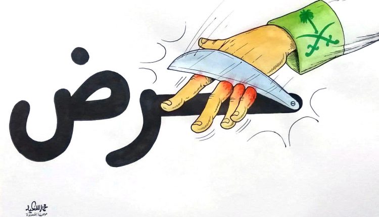 يوضح الرسم الكاركاتير عن محاولات يائسة للعدوان الأمريكي السعودي الاماراتي للأعتداء وبسط نفوذه على  مديرية حرض بمحافظة حجة، هب أبناء المنطقة للدفاع عن أرضهم وتقطيع اصابع احدى يدي المعتدي الأمريكي السعودي التي حاولت الامتداد على شبر من أرض اليمن ومقتل المئات منهم، واصابته العدو الأمريكي السعودي بنزيف حاد يصعب السيطرة عليه وفرار بقية مرتزقته كالجرذان من أمام قوات الجيش واللجان الشعبية.
