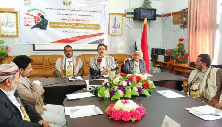 وحثّ على تعزيز دور مشايخ وأعيان وأبناء محافظة صعدة والمكاتب التنفيذية والمؤسسات والهيئات في التعبئة والتحشيد لمواجهة قوى العدوان .. مؤكداً الحرص على تفعيل طاقات المجتمع، وإشراكه في الحملة.