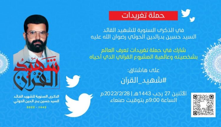 انطلقت في العاصمة صنعاء قبل دقائق حملة تغريدات الذكرى السنوية للشهيد القائد #شهيد_القرآن