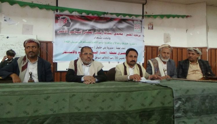 مديرية بني حشيش بصنعاء تعلن الاستنفار والتحشيد لحملة “إعصار اليمن”