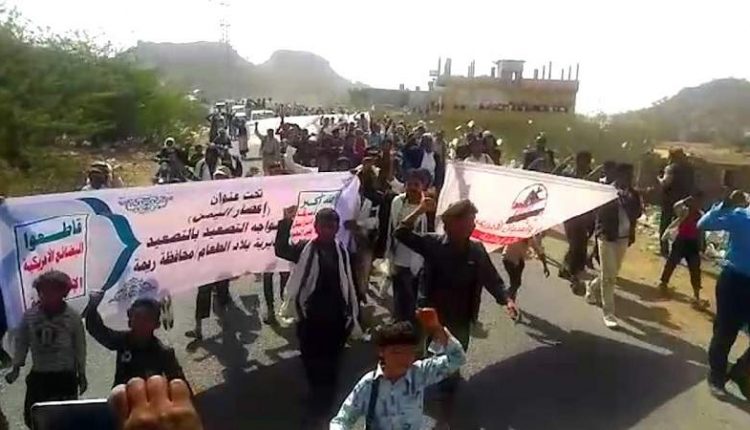 مسيرة ووقفة في بلاد الطعام بمحافظة ريمة رفضاً للحصار وجرائم العدوان
