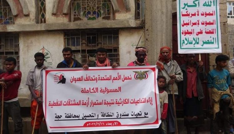وقفة لصندوق النظافة بمحافظة حجة تنديداً بالعدوان والحصار