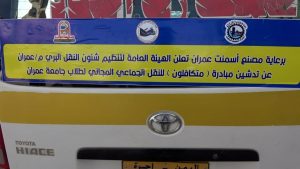 وتستهدف المبادرة التي تم تمويلها من مصنع إسمنت عمران بعدد 10 حافلات وباصات نقل وسط لخطوط السير القريبة من الطلاب الجامعة والكليات كمرحلة أولى لتسهيل تنقلاتهم ما بين منازلهم والجامعات الكليات وتخفيف العبء على الطالب والمواطن على تلك الخطوط جراء انعدام المشتقات النفطية واستمرار الحصار والعدوان.