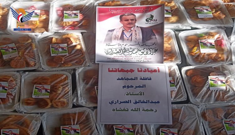 قدّمت أسرة فقيد الوطن مدير مكتب التربية والتعليم بمحافظة تعز عبدالخالق محمد الصراري اليوم قافلة عيدية لأبطال الجيش واللجان الشعبية المرابطين في الجبهات.