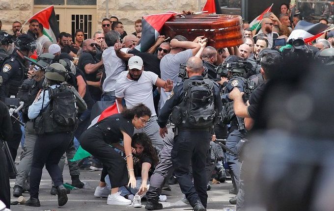 شاهد: ما فعله جنود الاحتلال الإسرائيلي بجثمان “شرين أبوعاقلة” أثناء خروجه والجهاد الإسلامي تعلق