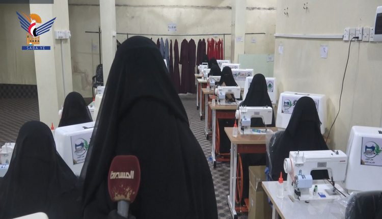 يهدف المشروع إلى تدريب 14 من أسر الشهداء في مجال الخياطة والتطريز وتسليمها مكائن خياطة.