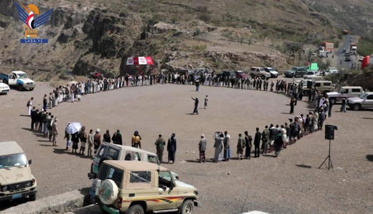 أقيمت في مديريتي السياني وبعدان بمحافظة إب، اليوم، وقفتان قبليتان بالذكرى السنوية للصرخة في وجه المستكبرين.