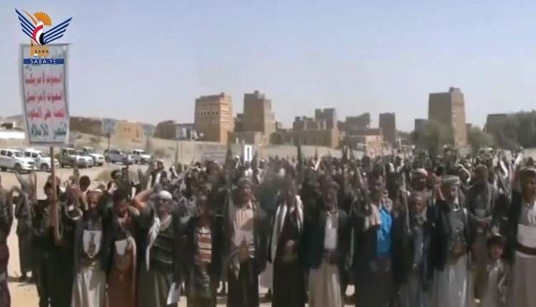 حيث خرج أبناء مديريات الجوف الأسفل بمسيرة حاشدة في سوق الاثنين بمديرية المتون، مرددين شعار الصرخة وهتافات منددة بالمخططات الأمريكية والصهيونية في المنطقة.
