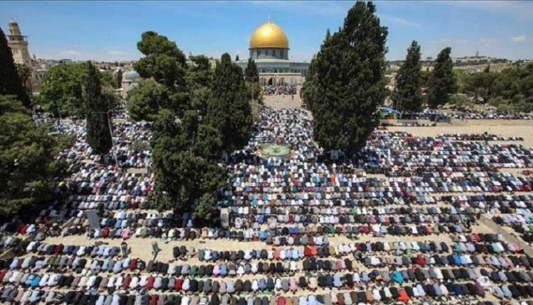 واكتظت ساحات المسجد الأقصى وباحاته بآلاف المصلين، الذين قدموا من محافظات الضفة بما فيها القدس المحتلة، وداخل أراضي العام 48.