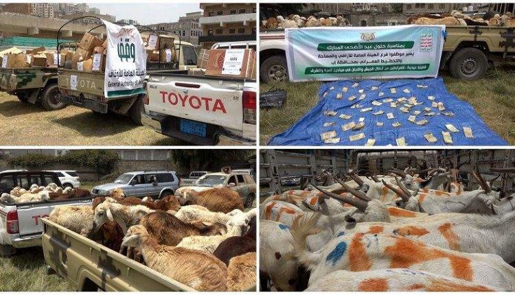 قافلة عيدية من مكاتب “الأوقاف والأراضي والمساحة والتخطيط العمراني والصحة” في محافظة إب للمرابطين في الجبهات