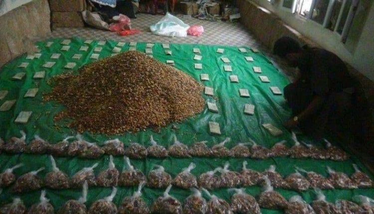 تضمنت القافلة خمسة ملايين ريال نقدا وأربعة رؤوس من الماشية وزبيب ولوز ومكسرات العيد وأدوية وعلاجات طبية.