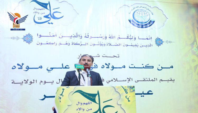 نظم الملتقى الإسلامي بصنعاء اليوم، فعالية خطابية بذكرى يوم ولاية الإمام عليّ عليه السلام.