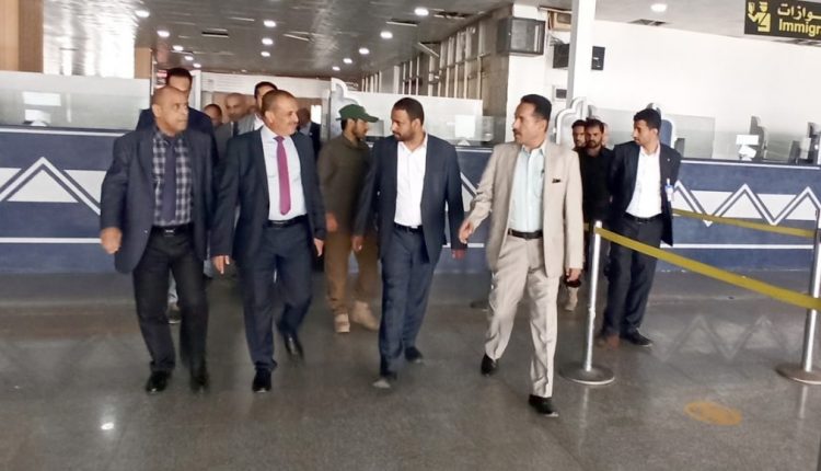 وزير النقل يتفقد سير العمل في مطار صنعاء الدولي ونادي الطيران المدني