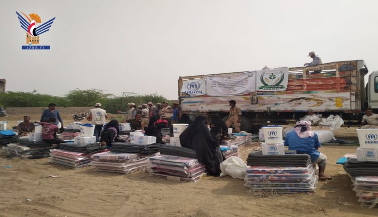 مجلس الشؤون الإنسانية يوزع مواداً إيوائية ونقدية في عدد من مديريات الحديدة