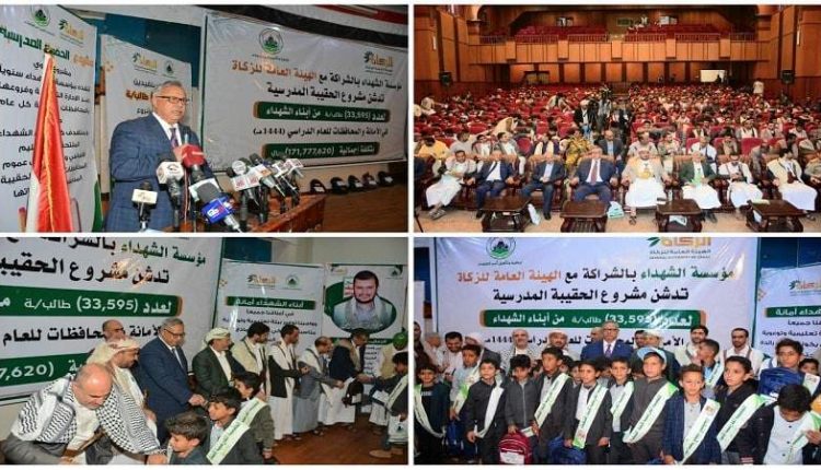 من جانبه أوضح المدير التنفيذي لمؤسسة الشهداء طه جران أن مشروع الحقيبة المدرسية السنوي يستهدف أبناء الشهداء الملتحقين بالتعليم الأساسي والثانوي لتخفيف الأعباء على أسر الشهداء وتشجيع أبناءهم على الالتحاق بالتعليم.