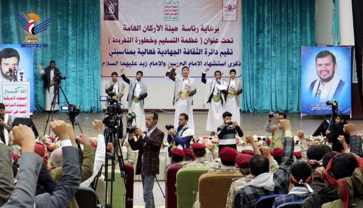 نظمّت دائرة الثقافة الجهادية اليوم فعالية خطابية بذكرى استشهاد الإمامين الحسين وزيد عليهما السلام تحت شعار “عظمة التسليم وخطورة التفريط”.