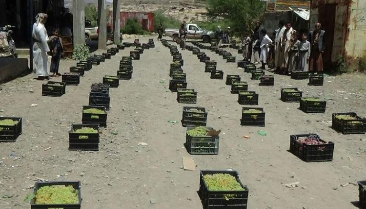 أبناء مديرية بني حشيش بمحافظة صنعاء يُسيّرون قافلة من “العنب” رفداً للجبهات