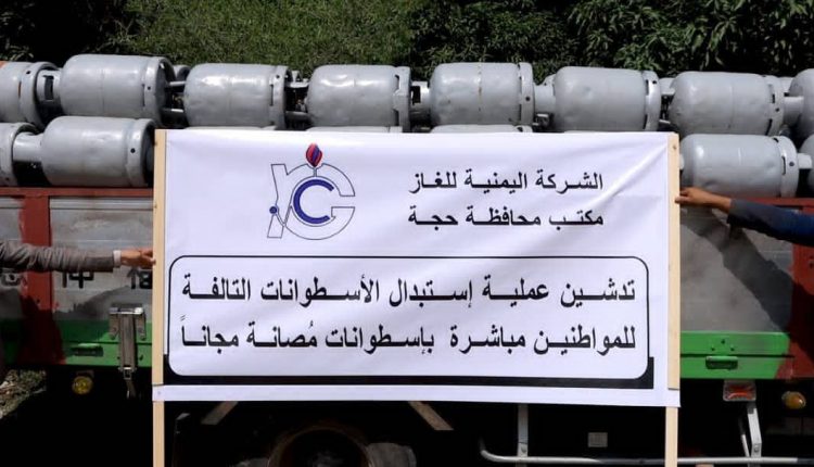 دشنت الشركة اليمنية للغاز منشأة حجة، اليوم، المرحلة الأولى من عملية استبدال اسطوانات الغاز التالفة للمواطنين بأسطوانات مصانة مجانا.