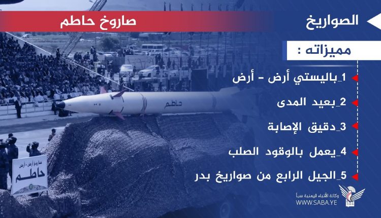 وأكد متحدث القوات المسلحة العميد يحيى سريع، بإن الصاروخ “حاطم” سيكون له دور كبير في دك حصون وقصور ومعاقل دول العدوان، في تأكيد منه على أن الصاروخ سيكون له دوره في حسم المعركة مع تحالف العدوان..
