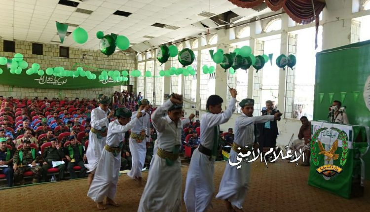 وفي الفعالية أشار نائب مدير شرطة المحافظة العقيد عبده عامر إلى أن هذه المناسبة تعتبر محطة توعوية تعزز الارتباط بمنهج الرسول الأعظم والاقتداء بهديه والسير على نهجه والتزود من سلوكه ومبادئه في الصبر والثبات لمواجهة العدوان، لافتا الى أن الشعب اليمني يتصدر الشعوب الاسلامية في إحياء ذكرى مولد الرسول الأعظم الذي وصف أهل اليمن بأنهم أهل الحكمة والإيمان.