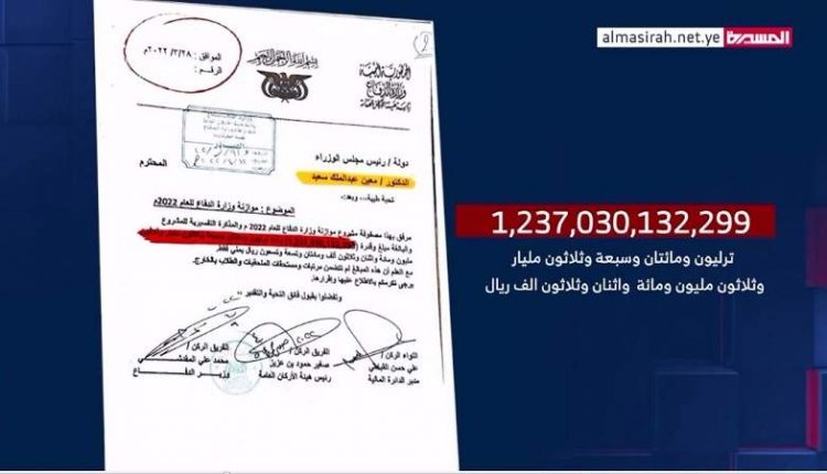 وأظهرت الوثائق أن موازنة ما تسمى “وزارة الدفاع” في حكومة المرتزقة للعام 2022 بلغت ترليون و237 مليار ريال، توزعت على النحو التالي: