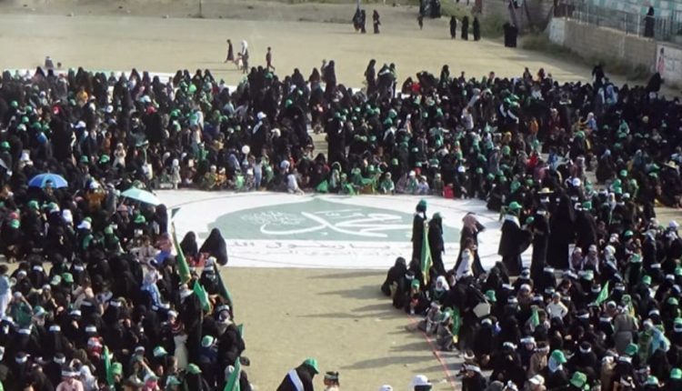 ورفعت المشاركات في الفعالية بملعب الرئيس الشهيد صالح الصماد الأعلام الخضراء والشعارات المعبّرة عن الفرحة والبهجة والفخر والاعتزاز بالنبي الخاتم، والانتماء إليه والاهتداء بهديه – صلى الله عليه وآله وسلم.