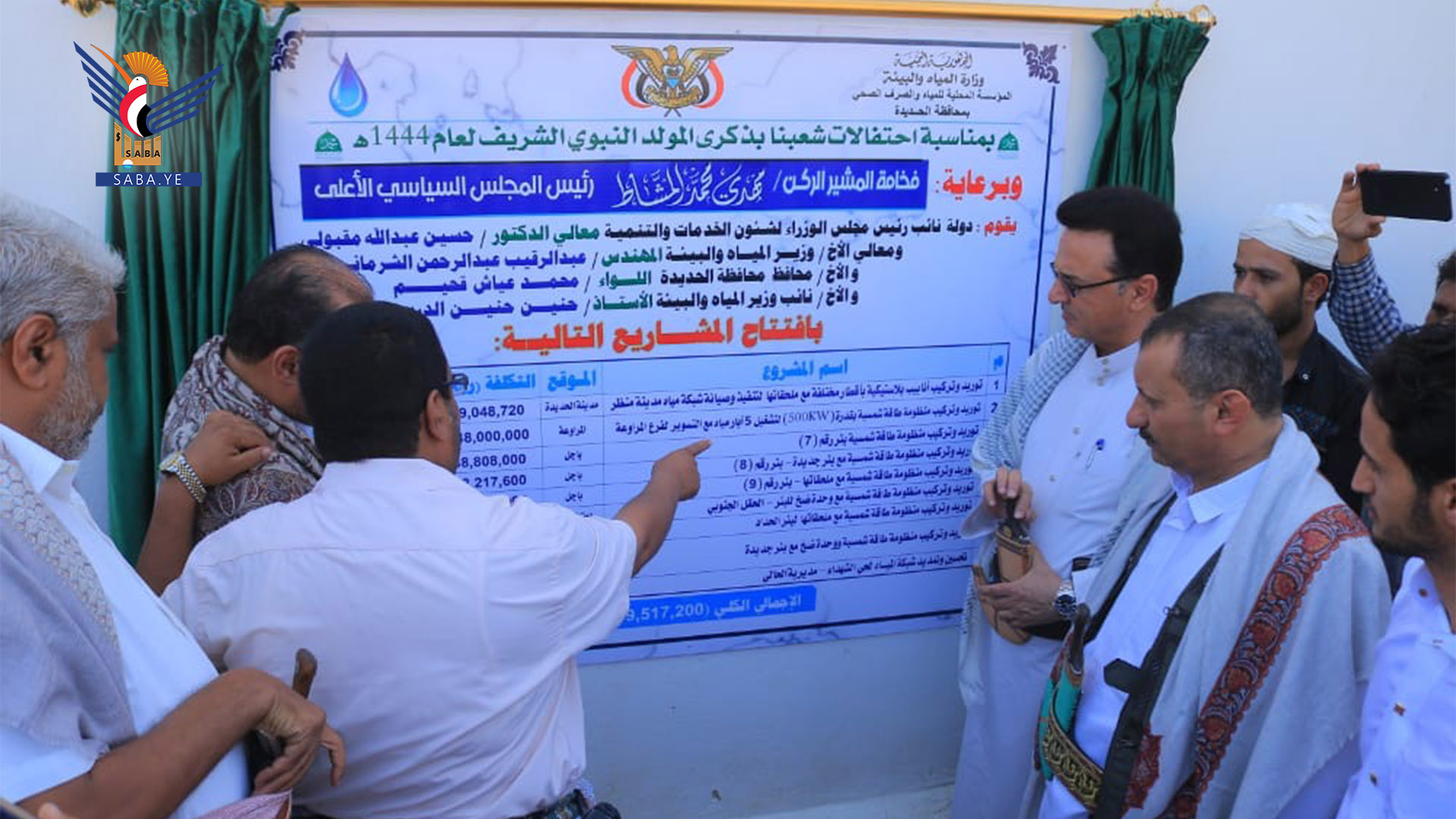 ويأتي افتتاح ووضع حجر الأساس لمشاريع المياه التابعة للمؤسسة المحلية والصرف الصحي بمحافظة الحديدة، بمناسبة احتفال اليمن بذكرى المولد النبوي الشريف.